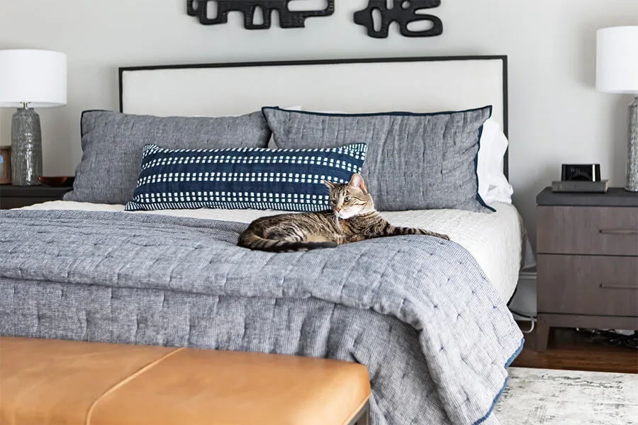 We had the opportunity to work with a busy professional couple who had a functional bedroom that lacked in character and luxury. It was a typical room with basic furniture, plain walls, and minimal decor. The space didn’t reflect their personalities or lifestyle and certainly didn’t offer the luxurious retreat the craved after long work days.